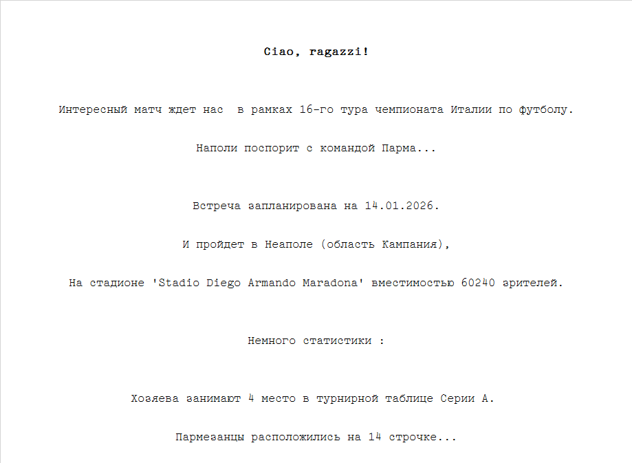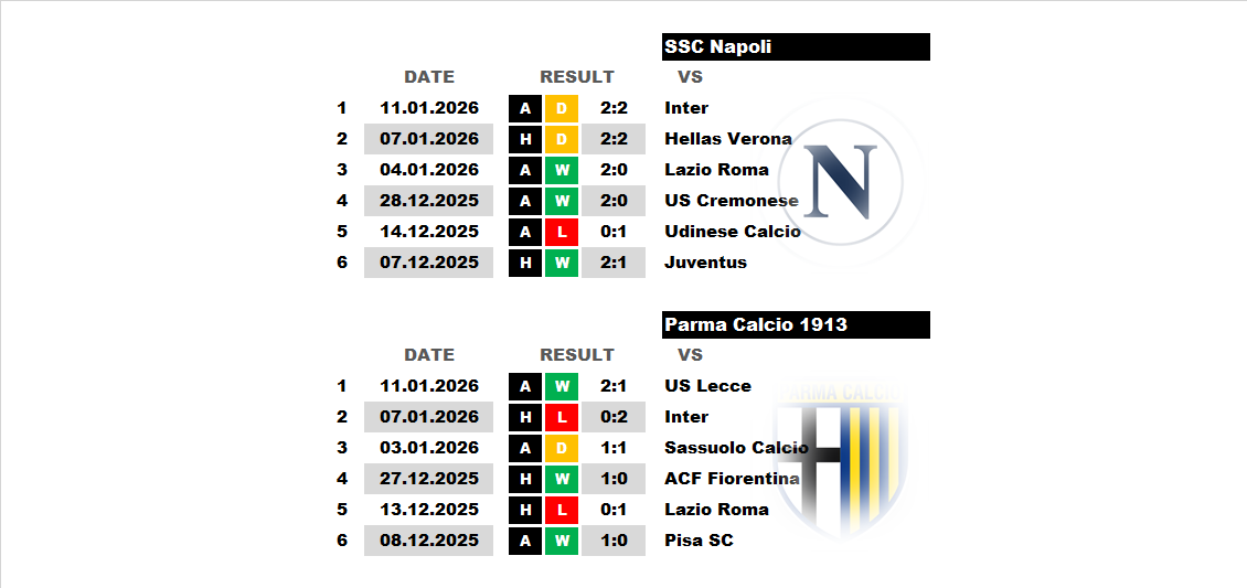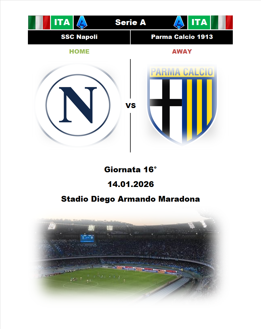 BetTop-5 опубликовано 13.01.2026 20:17 Napoli - Parma 20:30 14.01.2026 Football Italy. Serie A. Napoli Parma Serie A Italy 0 4